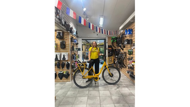 Hos Fri Bikeshop Vejle kører vi med samme gejst som feltet - og vores gule cykler er næsten ligeså hurtige som rytterne på en nedkørsel