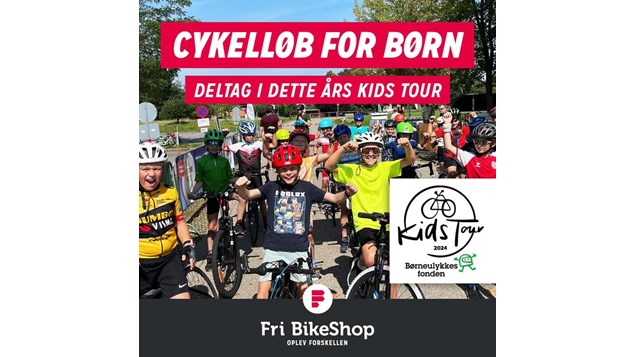 Vi er stolte partnere af dette års Kids Tour. Kommer du forbi Fri BikeShop Vejle inden cykelløbet d. 17 maj i Grindsted så kan du få en voucher med en rabatkode og købe din billet til halv pris. Det er først til mølle.