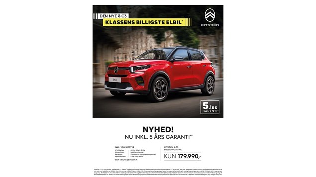 Nu får du 5 års fabriksgaranti*, når du køber en ny, elektrisk Citroën!