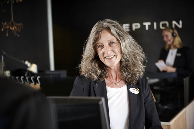 - Jeg føler, at vi er lidt anderledes her på Vejle Center Hotel. Vi kan både grine og græde sammen med gæsterne, og det handler om, at vi tager dem alvorligt, og at vi lytter til, hvad de siger. Og nogle gange også lytter til det, som de ikke siger, fortæller receptionisten, der både arbejde dag- og aftenhold.