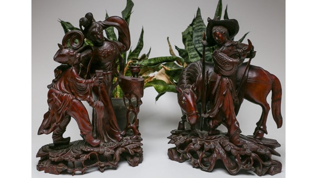 Kinesisk træsnit. 2 figurer hvor spidsen er knækket af et spyd, ellers i orden. Kr. 100,-/stk. Babushka (bedstemor) den kendte russiske dukke, med en række mindre dukker indeni. 7 dukker i alt. Frems...