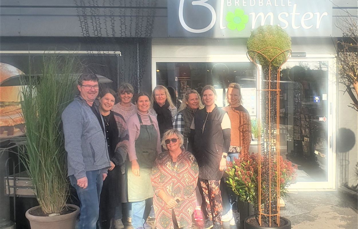 Bredballe Blomster beskæftiger otte fuldtids medarbejdere, der har nok at gøre med alle de aktiviteter, der hører til butikken. De står egenhændigt for indkøb, disponering, opsætning, salg med videre.
