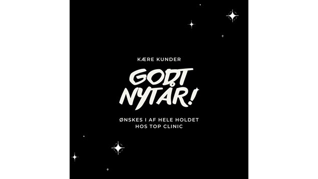 Vi ønsker dig et rigtig godt og lykkebringende nytår og tak for året der gik. . TOP CLINIC - NØRREGADE 10A - 7100 VEJLE - TOPCLINIC.DK - 75835095