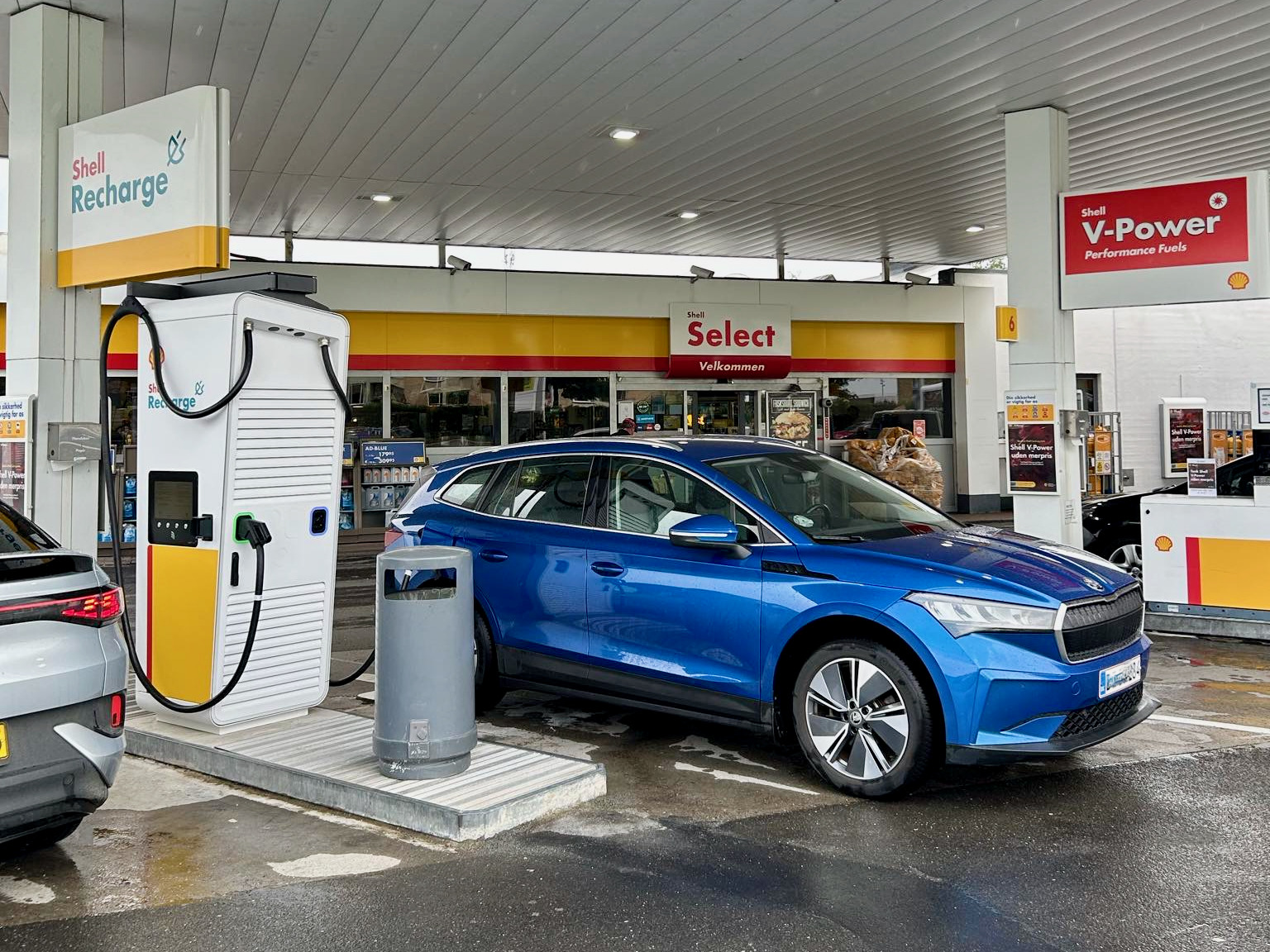 Lynladeren hos Shell på Horsensvej i Vejle er placeret under det store halvtag på forpladsen foran butikken – ved siden af diesel- og benzinstanderne.