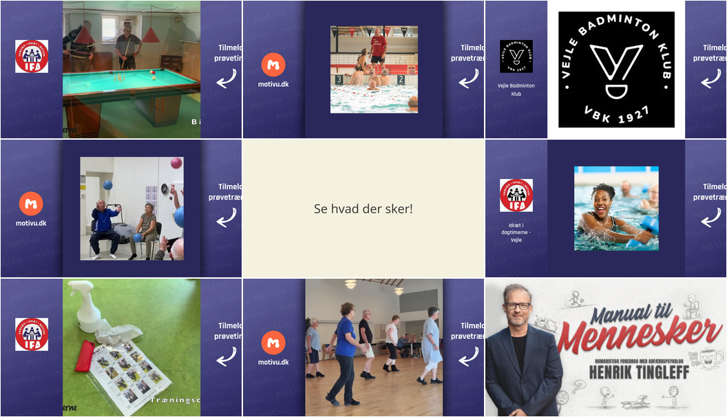 I den kommende uge er der en bred vifte af aktiviteter i Vejle, der tilbyder mulighed for både motion og intellektuel fordybelse. Uanset interesse, er der noget for de fleste - tag et kig på de følgende arrangementer og planlæg din uge.