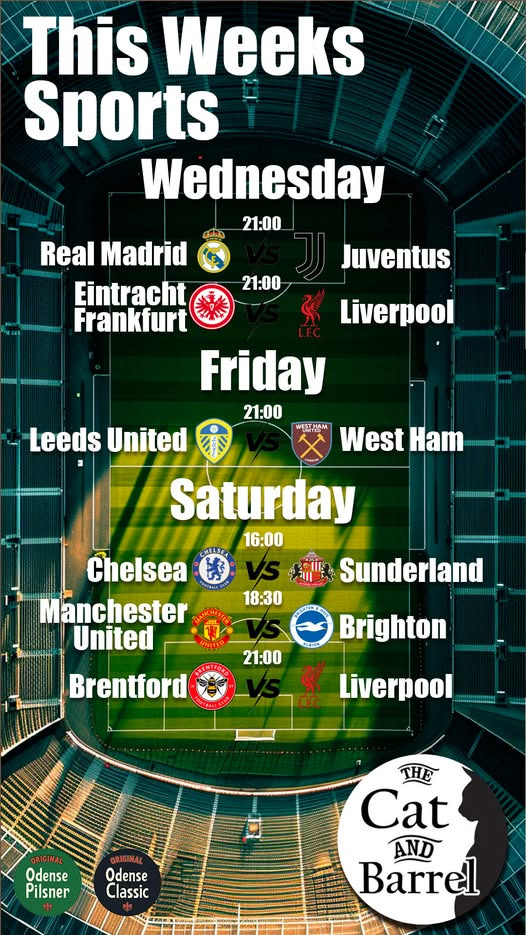 The Cat & Barrel: oplev ugens sportsbegivenheder live hos os!