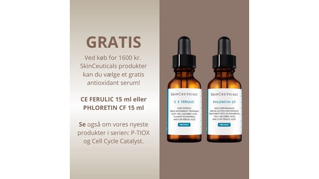 Ved køb for 1600 kr. kan du vælge CE Ferulic 15 ml eller Phloretin CF 15 ml. Skriv dit valg under bemærkning ved bestilling på shoppen!⁠