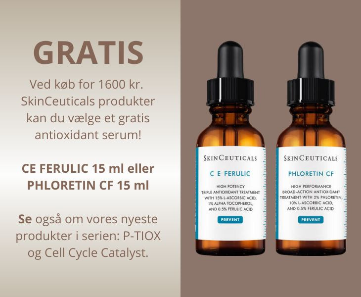 Ved køb for 1600 kr. kan du vælge CE Ferulic 15 ml eller Phloretin CF 15 ml. Skriv dit valg under bemærkning ved bestilling på shoppen!