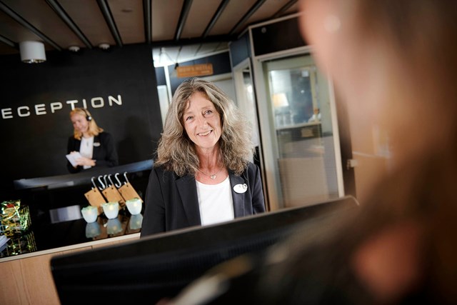Foto: Vejle Center Hotel // Receptionist Mette Bonde stræber efter at få alle, gæster såvel som personale, til at føle sig hjemme