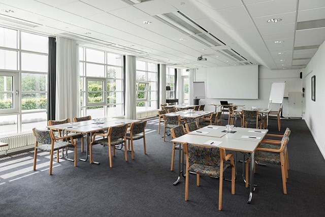 Foto: På Vejle Center Hotel har vi gode faciliteter til alle typer dagskonferencer, herunder store og lyse mødelokaler med udgang til en stor terrasse, lokaler med plads til op mod 150 mennesker