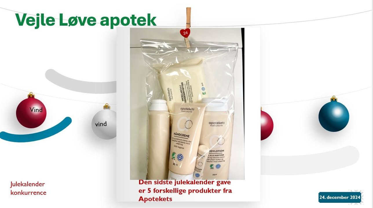 Vinderen får direkte besked via Facebook, og gaven skal hentes på apoteket indenfor 14 dage.